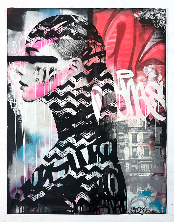 - Mixed Media on canvas (Spray Paint, Silkscreen, Ink & Acrylic)