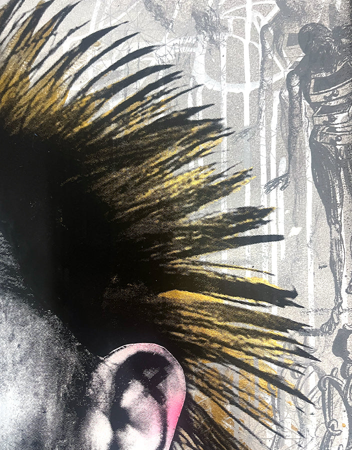 - Mixed Media (Spray Paint, Silkscreen, Ink, Acrylic & Collage) on acid free, 300g White Somerset Velvet Paper (Deckled Edges)