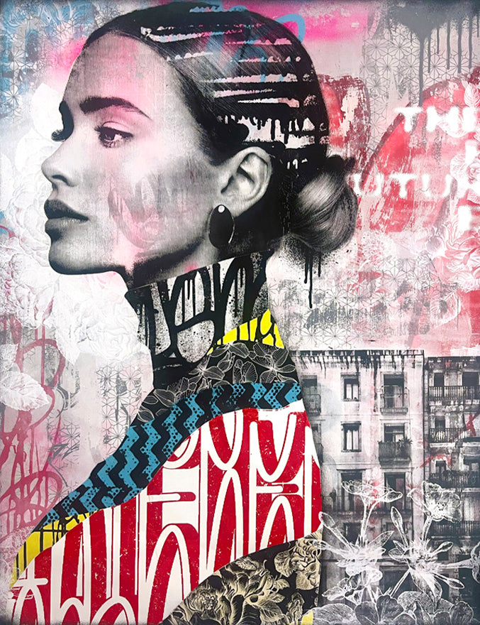 True to the essence of the "Pretty and Gritty" collection, this work juxtaposes beauty and chaos, allowing the viewer to uncover hidden narratives beneath each silkscreened layer. It is both a tribute to the dynamism of cityscapes and a reflection of the multifaceted nature of identity.